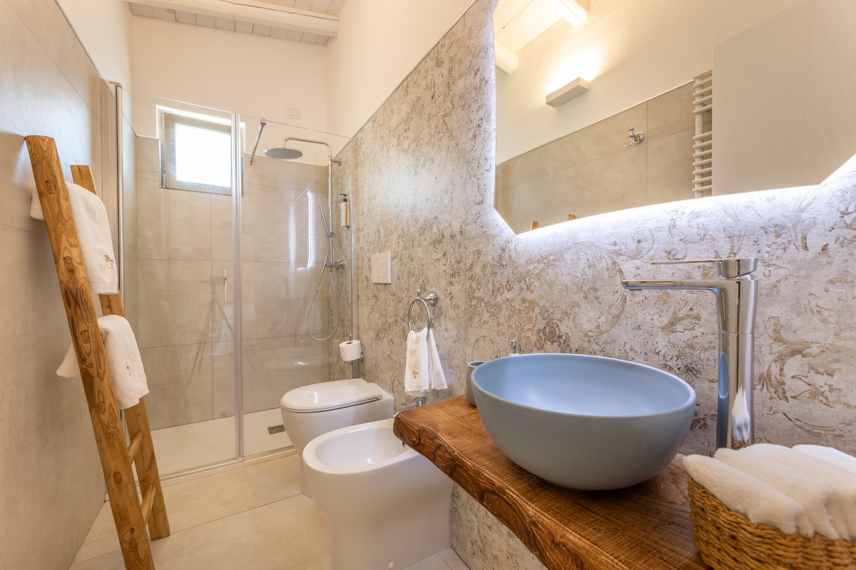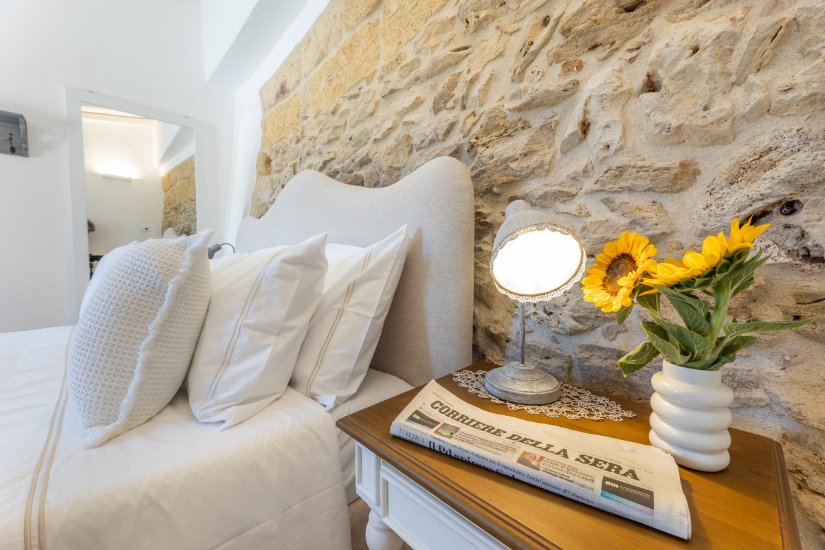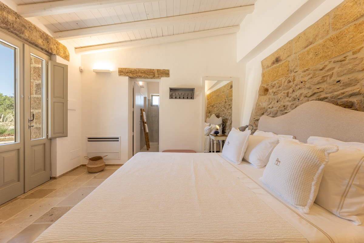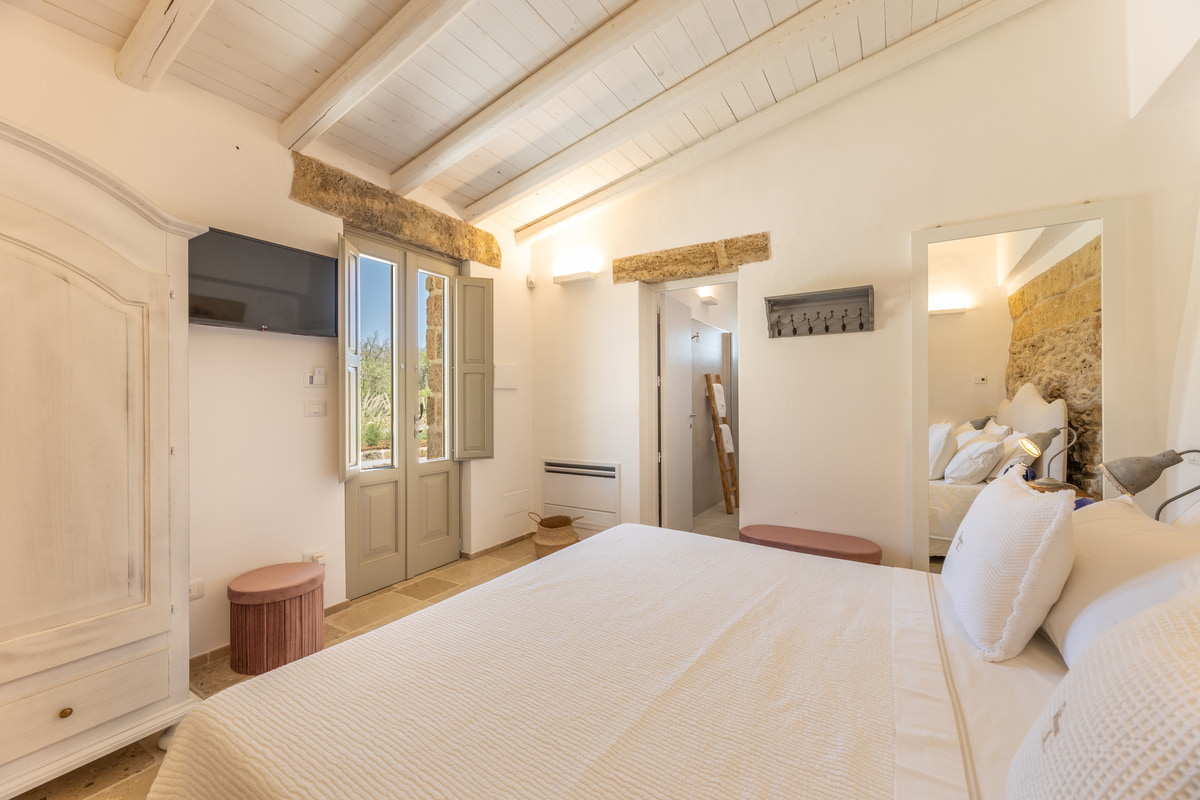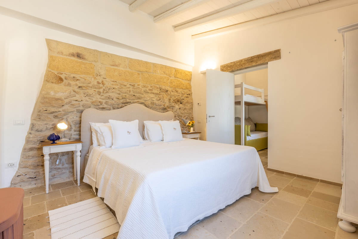 Dedicata ad Angela, moglie del titolare, questa camera è una dichiarazione d’amore trasformata in spazio da vivere. I suoi 24 mq racchiudono un rifugio intimo, luminoso e accogliente, arredato in stile modern country con dettagli che richiamano la tradizione salentina. Perfetta per famiglie grazie al letto a castello, unisce funzionalità e calore autentico. L’ingresso indipendente assicura riservatezza, mentre la porta comunicante la rende ideale per chi desidera restare vicino ai propri cari. È un luogo dove ogni gesto si intreccia con l’autenticità della vita rurale.